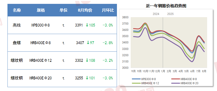 8月,钢材市场全体维持淡季供需款式,
